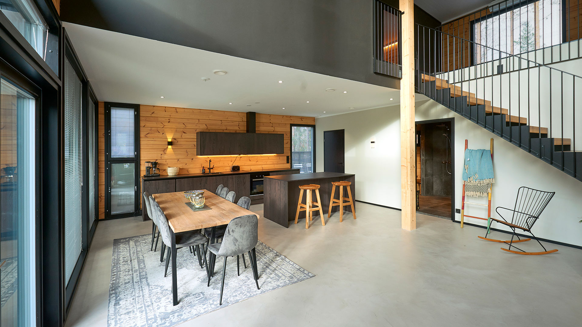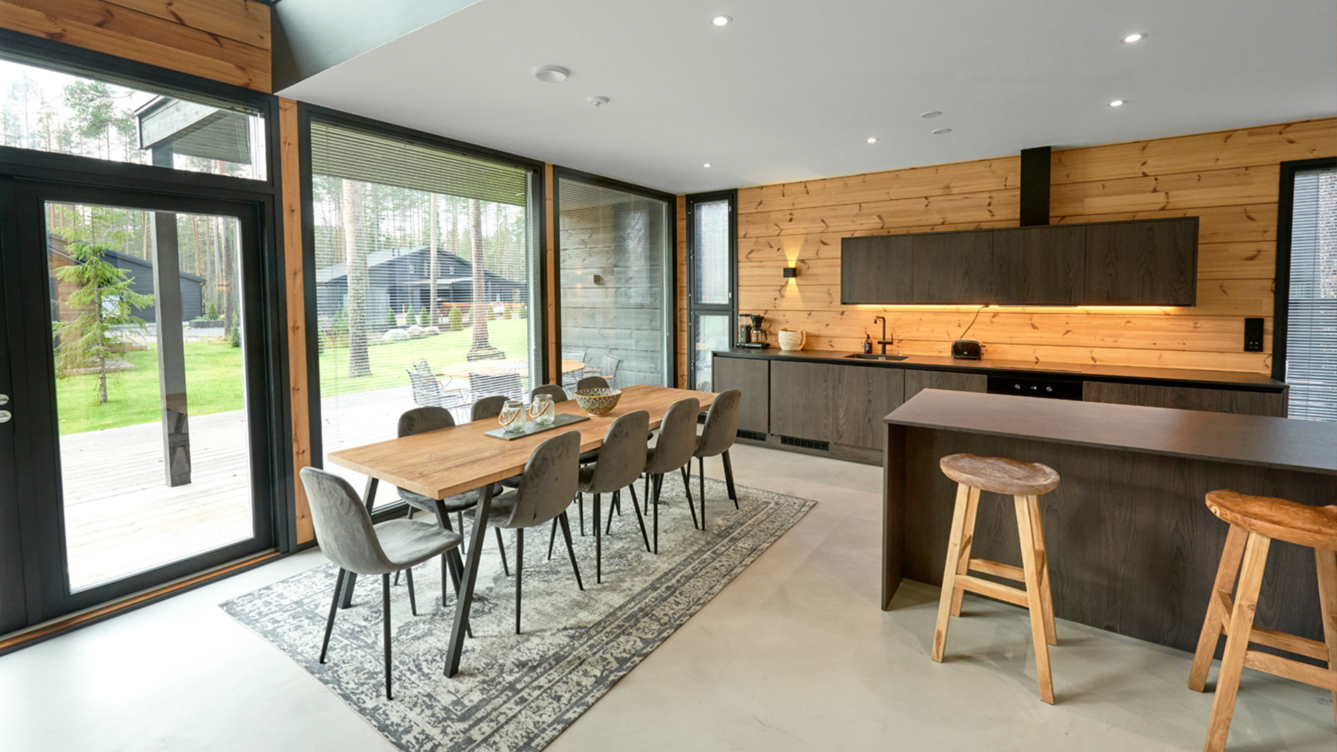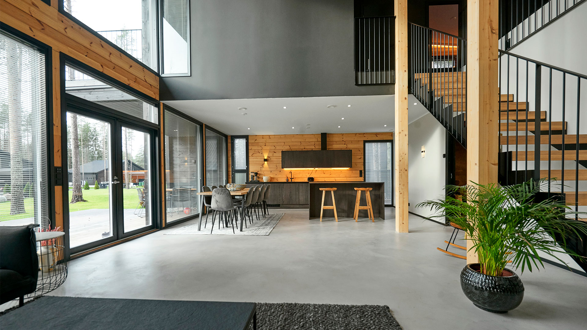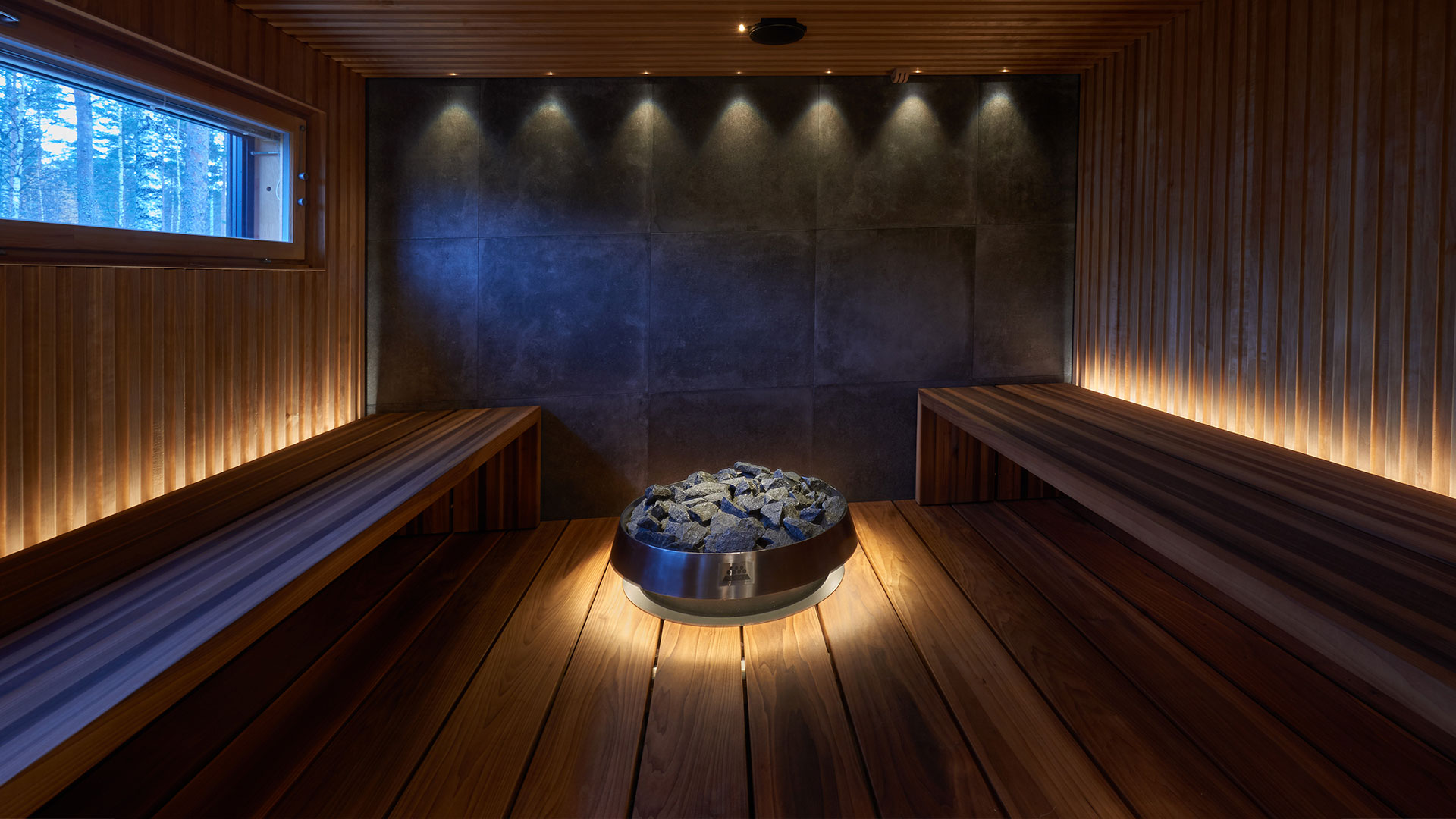 Tyylikkään hirsitalon etusivu on kokonaan lasia. Sisällä lämmintä tunnelmaa luovat puu, kivi ja muut ajattomat luonnonmateriaalit. Erityisintä Villa IKI:ssä on suuri ainutlaatuinen design sauna, jonka lauteille mahtuu jopa 10 saunojaa samanaikaisesti. Lauteet ovat ylellistä magnoliaa ja kiuas Eero Aarnion suunnittelema IKI Float.